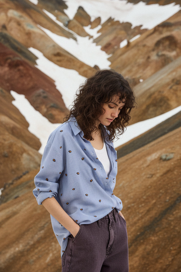 Chemise broderie bicolore all over, inspiration chemise d’homme.